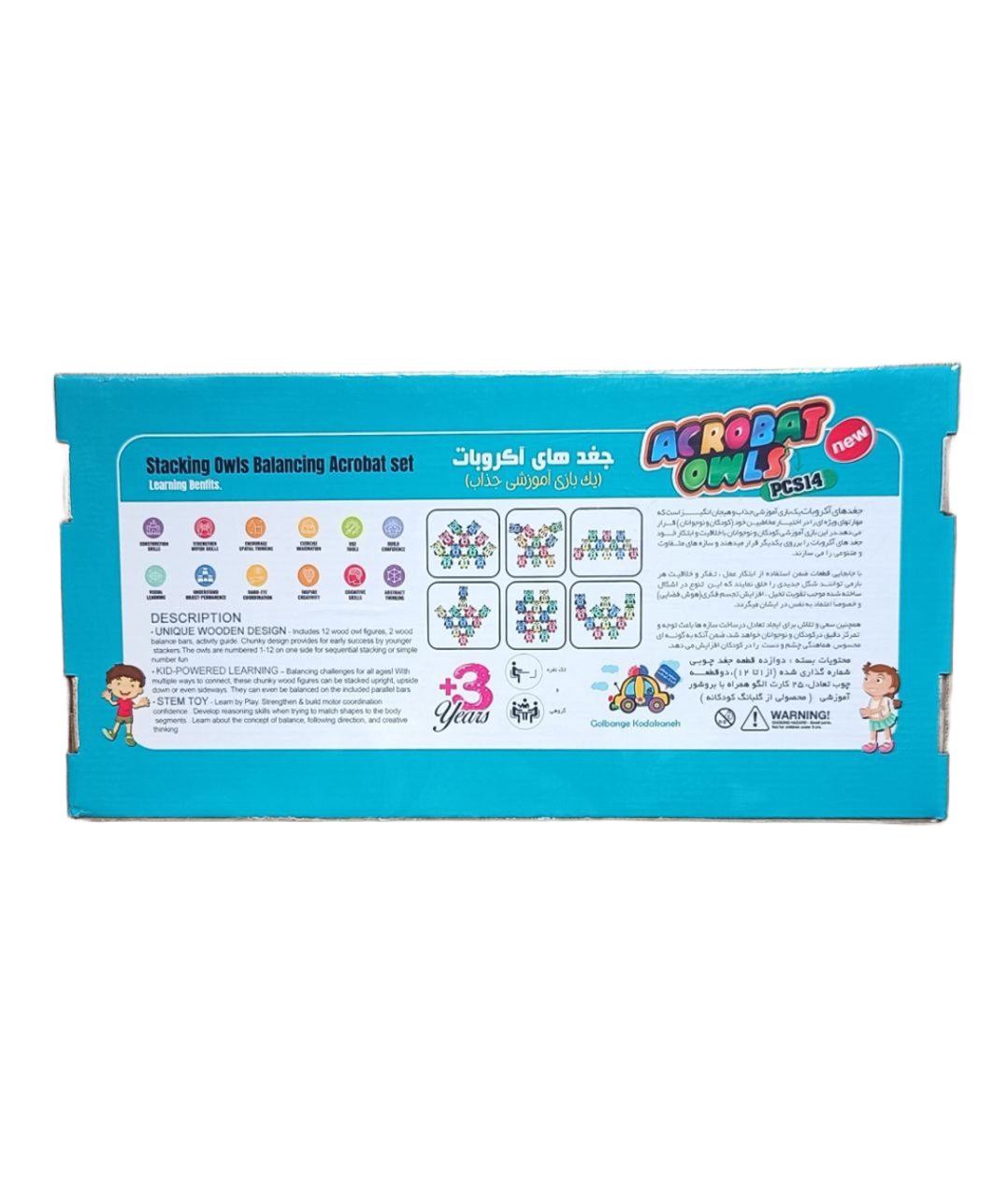 اسباببازی جغدهای آکروبات یک اسباببازی سرگرمکننده و آموزشی است که با طراحی جذاب و رنگهای شاد، بچهها را ساعتها سرگرم میکند. این جغدهای بامزه روی هم قرار میگیرند و با حرکات تعادلی میتوان آنها را به شکلهای مختلف چید. بازی با این جغدها علاوه بر ایجاد هیجان و خنده، به تقویت هماهنگی چشم و دست، تمرکز، مهارت حل مسئله و خلاقیت کودک کمک میکند.