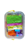 محتویات بسته : ۳ بسته خمیر شنی،۱ عدد سفره بادی،۱ بیلچه،۱ شن کش،۵ تا ابزار،۲۱ قالبر،