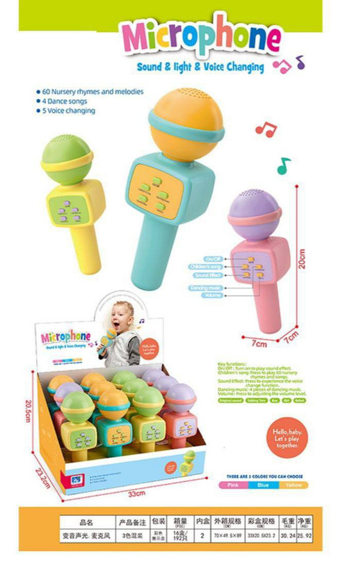 میکروفون موزیکال کودکانه با قابلیت پخش صدا، نور و تغییر صدا، اسباببازیای سرگرمکننده و آموزشی برای کوچولوهاست. این میکروفون با طراحی رنگارنگ و خوشدست، باعث تقویت مهارتهای شنیداری، اعتماد به نفس و خلاقیت کودک میشود.