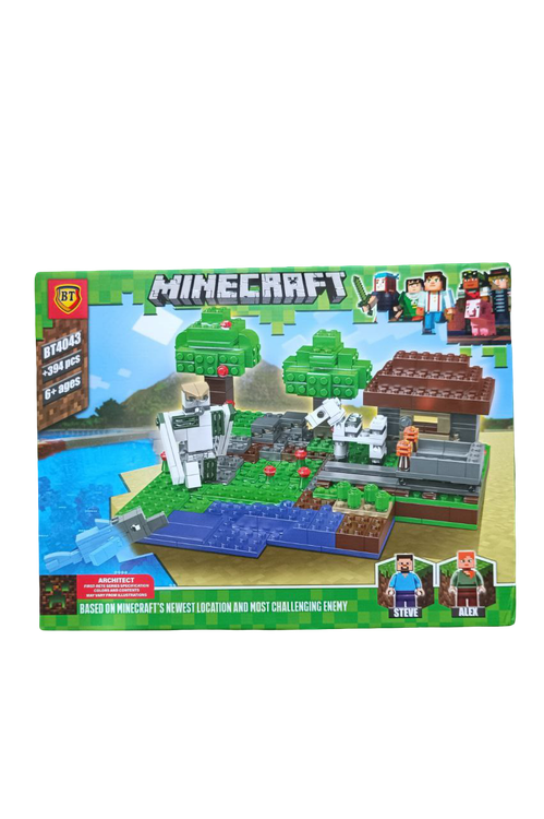 درون این بسته دو فیگور محبوب استیو (Steve) و الکس (Alex) به همراه موجودات و سازههای مختلف ماینکرفت قرار دارد که تجربهای واقعی و سرگرمکننده را برای کودک ایجاد میکند. وجود آیتمهایی مانند درخت، خانه، رودخانه و گالم فلزی (Iron Golem) باعث میشود بازی بسیار شبیه نسخه اصلی ماینکرفت باشد.